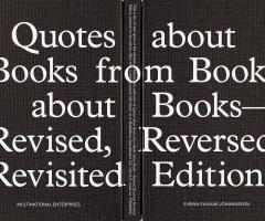 Printed in a limited edition of 555 copies, Quotes about Books from Books about Books—Revised, Reversed, Revisited Edition will be released on 4 September 2025 in conjunction with the exhibition at einBuch.haus in Berlin.