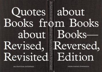 Subtitled Revised, Reversed, Revisited Edition, the publication resists conventional ordering, unfolding according to its own internal logic. Through excerpting, recontextualizing, and cataloguing, it explores how books articulate their own conditions of production, distribution, and reception.